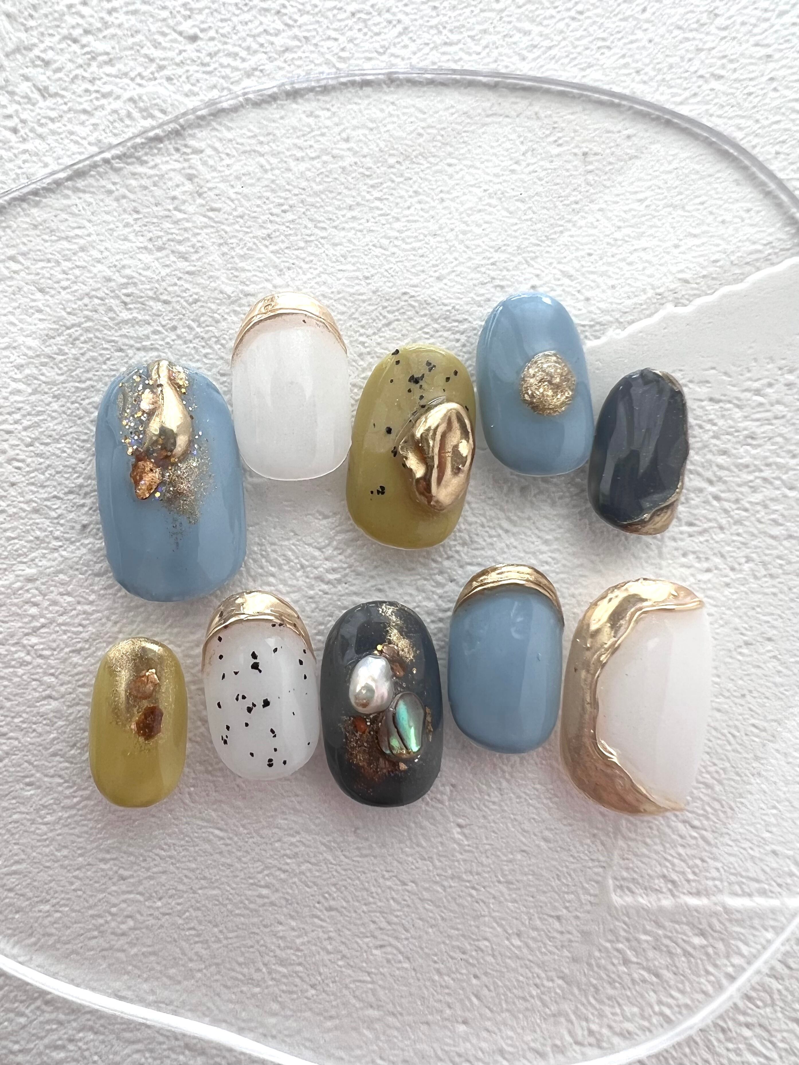 ネイルチップ~kahki × blue otonanuance~
